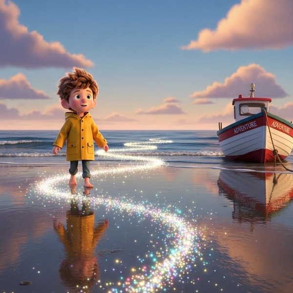 На березі Кирилко знову побачив знайомі сліди. Але снів тут не було. Мабуть, далі вони вирушили морем. Хлопчик помітив біля причалу кораблик, вибіг на палубу і підняв вітрило. Кораблик слухняно відчалив від берега і помчав по хвилях. Кілька разів Кирилкові здавалося, що він уже близько. Ось-ось наздожене. Над обрієм з’явилося сонце. Тонкими промінчиками воно полоскотало хлопчика, і він чхнув. І раптом… прокинувся. Сонячне проміння розсипалося по кімнаті.