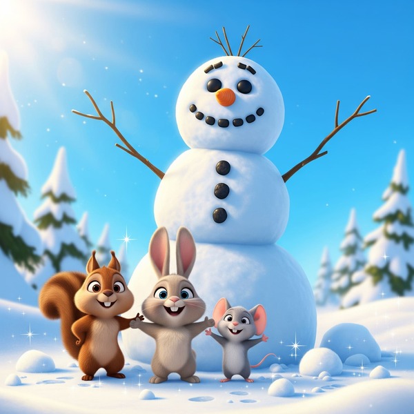 — Все одно в мене найкращий сніговик вийде, — ображено пихкало білченя. — Ще пошкодуєте, що не вірили, — дулося зайченя. — Нічого-нічого! А найбільший сніговик все одно у мене вийде! — кректало від натуги мишеня, штовхаючи поперед себе снігову кулю.
