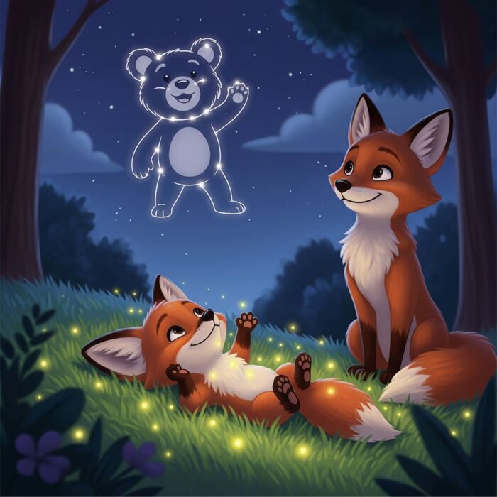 Там, високо-високо, поряд із Великою Ведмедицею сиділа Маленька Ведмедиця. Вона усміхалася і махала лисичці лапкою.